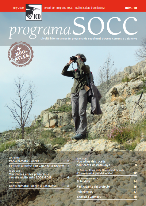 El programa de Seguiment d’Ocells Comuns a Catalunya (SOCC) és un projecte impulsat des de l’Institut Català d’Ornitologia i el Departament de Territori, Habitatge i Transició Ecològica de la Generalitat de Catalunya amb l’objectiu principal de determinar les tendències temporals en l’abundància d’ocells comuns a Catalunya i, a partir d’aquestes, generar indicadors que permetin avaluar l’estat de conservació del nostre entorn.